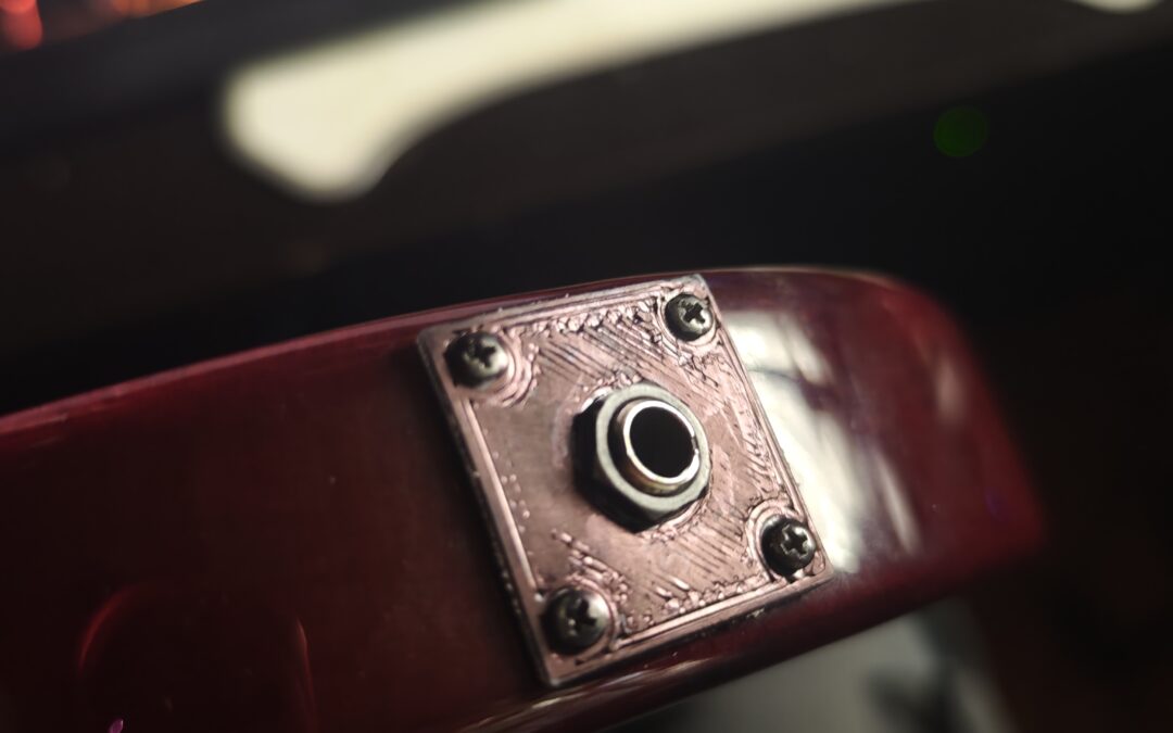 Recientemente se me quebro el cover de la entrada del cable de 1/4″ y encontrar uno original era complicado por lo que se me ocurrió que era algo facil de hacer, y puede servir como reemplazo temporal aunque en mi caso asi se va a quedar.
